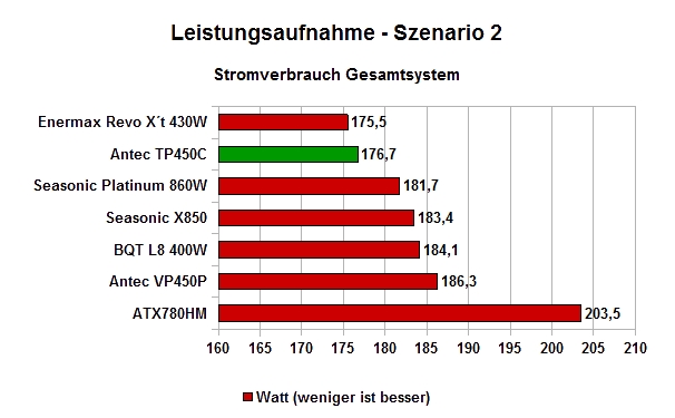 Szenario 2: Prime95, Grafikkarte im Idle (Leistungsaufnahme ca. 175 W)