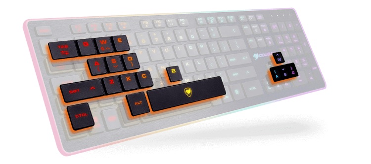Wie bereits zu Beginn erwähnt, liegt eines der vielen Features der Tastatur in den besonders flachen Schaltern. Cougar selbst bezeichnet jene als "Scissor Switch" (zu Deutsch: Scherenschalter), der Name leitet sich aus der Art ab, wie die Tastenkappen und die Mechanik verbaut sind. Erstere ruhen auf einem scheren-ähnlichen Mechanismus über der Gummiglocke, die das elektrische Signal auslöst. Da dieses Konzept relativ wenig Platz verbraucht, kann hiermit eine flache Bauweise ermöglicht werden. Für all diejenigen, welche die Tastatur optisch ansprechend finden, aber von der Art der Signalerzeugung nicht ganz überzeugt sind, haben wir leider schlechte Nachrichten: Die Tastatur ist nicht mit anderen Schaltern erhältlich.