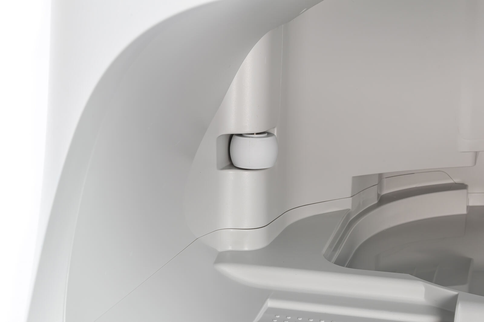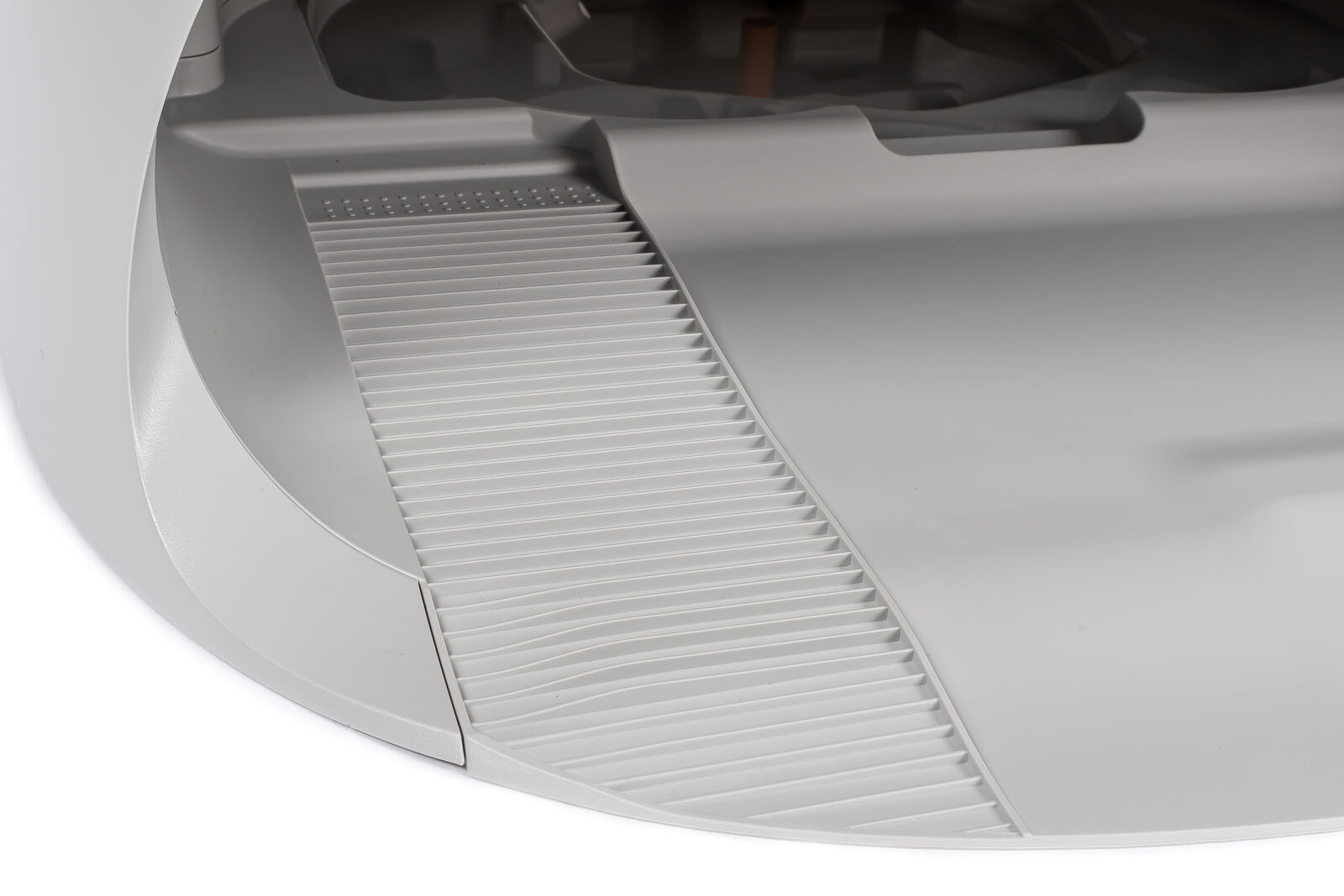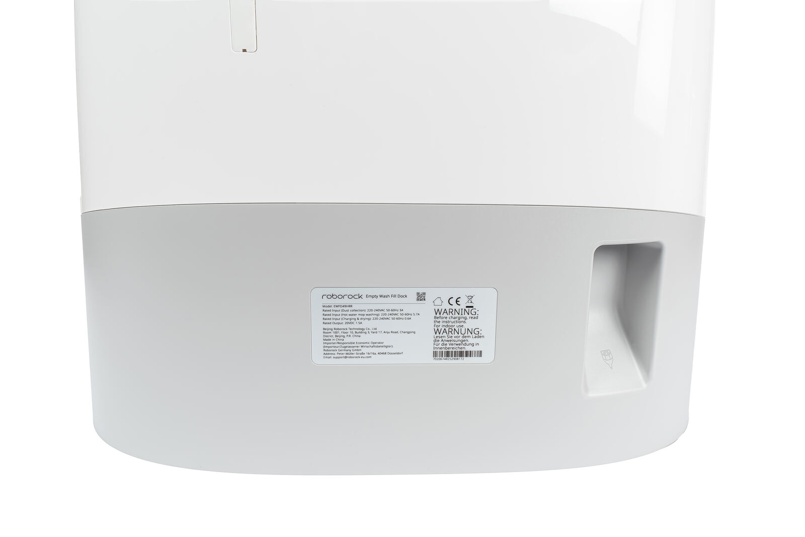 Betrachtet man den unteren Bereich der Station, wird schnell klar, dass Roborock die Mulde bzw. die „Parkposition“ des Saugers bewusst fast vollständig überdacht hat. Der Roboter steht dadurch nicht mehr frei im Raum, sondern ist in der Station weitgehend geschützt - ein praktischer Vorteil, gerade in Haushalten mit Kindern oder Haustieren, wo ein unabsichtlicher Tritt gegen das Gerät sonst schnell mal passiert ist.
