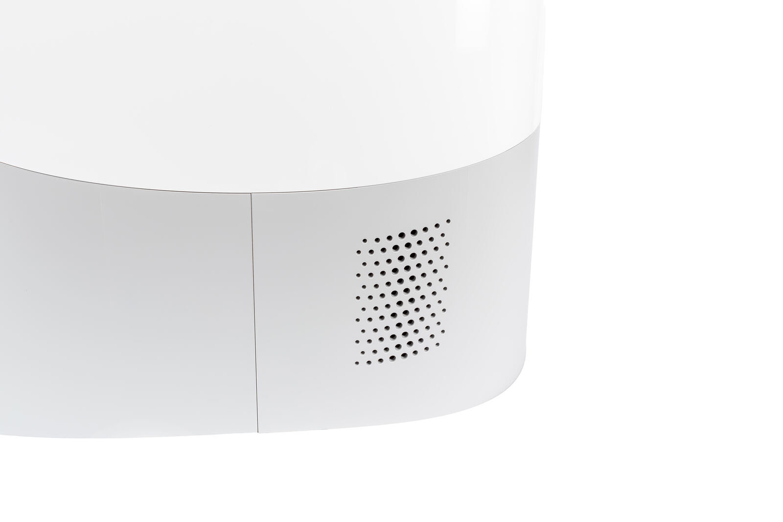 Trotz ihrer Rundung gehören die nahezu quaderförmigen Abmessungen der Station von rund 450 × 450 × 450 mm aber leider nicht wirklich in die Kategorie der kompaktesten Dock-Lösungen. Für eine reine Ladestation wäre dieses Format klar überdimensioniert, da sie in der Regel eben eher schlicht und deutlich niedriger ausfallen. Beim Curv 2 Pro dockt der Saugroboter jedoch an einer vollwertigen All-in-One-Einheit an, die Staub absaugt, die Mopps wäscht, trocknet und gleichzeitig mehrere Tanks beherbergt. In diesem Funktionsumfang und bewusst auch als Designelement gewählt, ist die Größe also erwartbar und absolut nachvollziehbar.