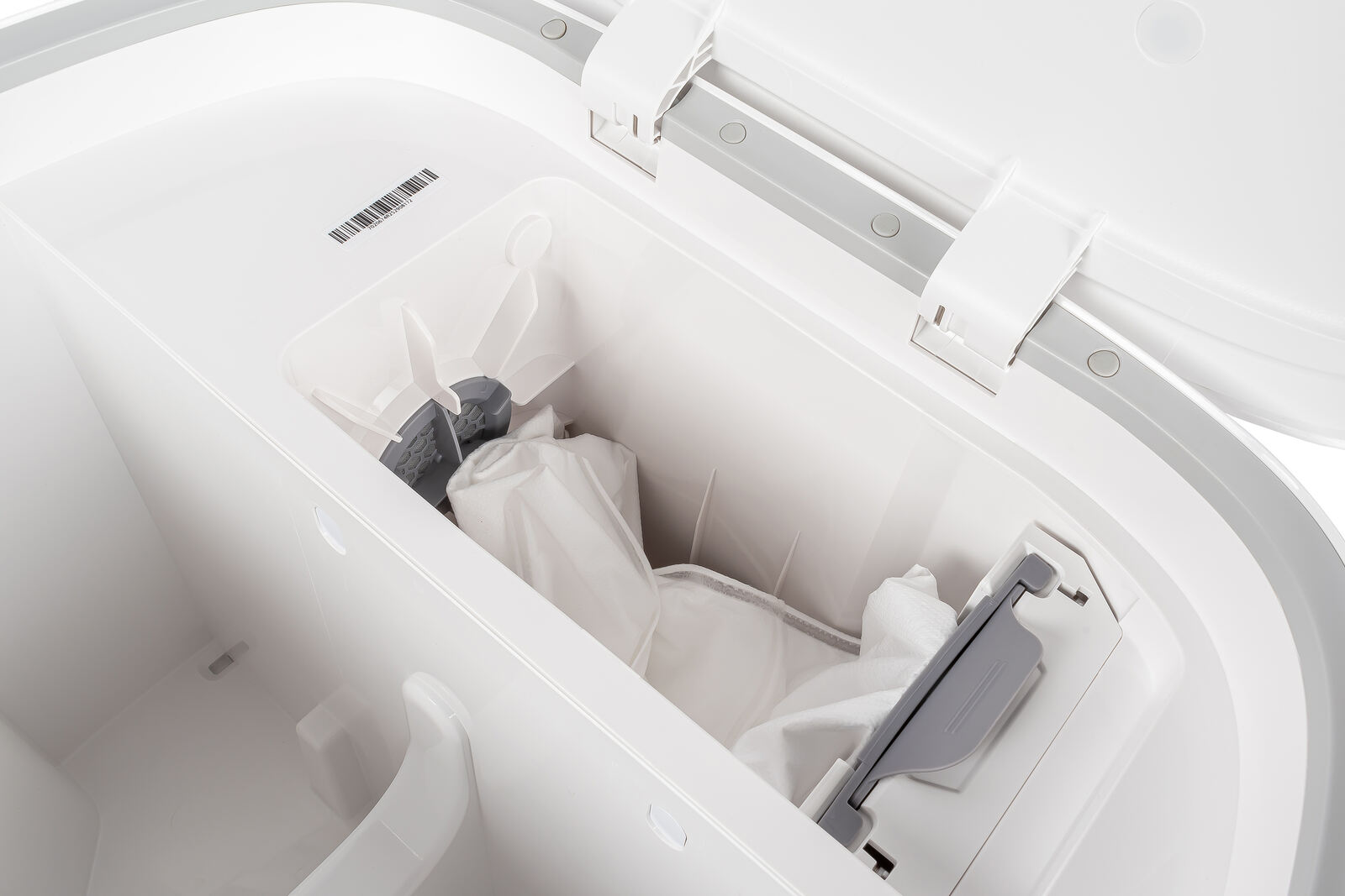 Im Anschluss setzt die Trocknung der Mopps ein. Diese erfolgt über einen rund 55 °C warmen Luftstrom, der kontinuierlich auf die Mopps gerichtet ist und sie gleichmäßig und vergleichsweise leise trocknet. Je nach Einstellung kann dieser Vorgang bis zu drei Stunden dauern. Ziel ist es, Restfeuchtigkeit möglichst vollständig zu entfernen und damit Geruchsbildung sowie Bakterienwachstum von vornherein zu vermeiden.