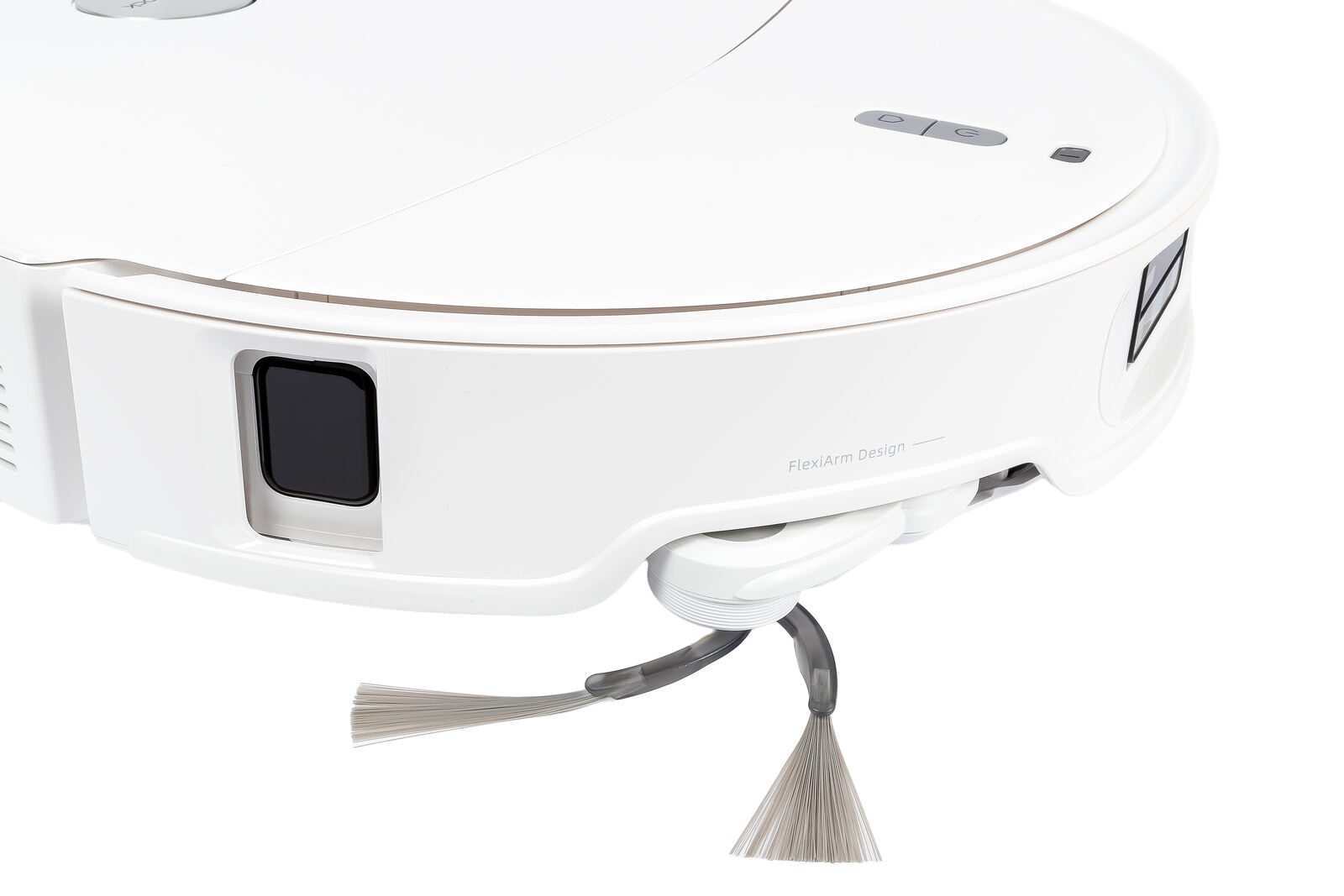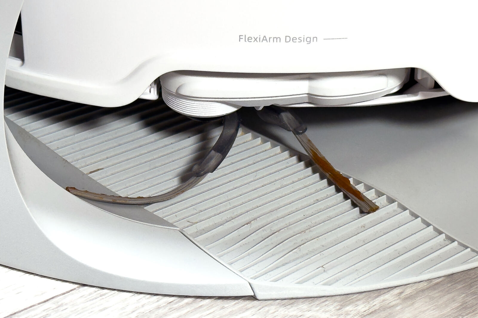 Sie adressiert ein bekanntes Problem, das Saugroboter seit Jahren schon begleitet: Gerade entlang von Kanten und in Ecken bleibt oft einfach zu viel liegen. Während herkömmliche Seitenbürsten lediglich im Kreis rotieren und dabei nur einen begrenzten Bereich erreichen, kann die FlexiArm-Konstruktion ihre Position aktiv anpassen.