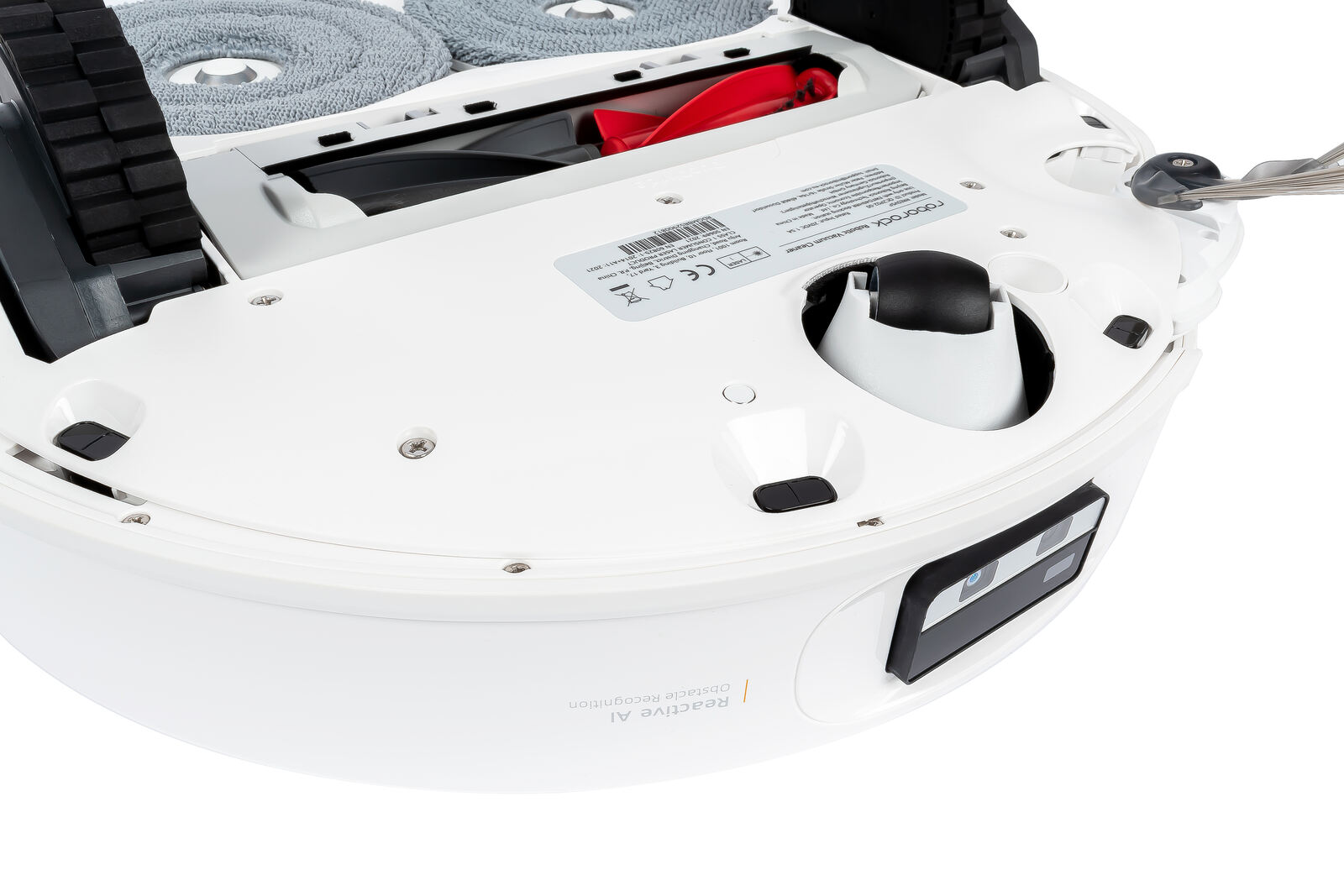 Um kleinere Hindernisse am Boden zu erkennen, ergänzt Roborock das System um eine RGB-Frontkamera mit Reactive-AI-Erkennung. Die Kamera dient nicht der großflächigen Navigation, sondern analysiert gezielt den Nahbereich, etwa Kabel, Schuhe oder Textilien, die ein LiDAR nicht erfassen kann. Laut Hersteller lassen sich dabei bis zu 200 Objektarten unterscheiden. In der Praxis hängt die Zuverlässigkeit jedoch stark von der Beleuchtung und der klaren Erkennbarkeit der Objekte ab, da die Kamera ohne Tiefensensor arbeitet und ausschließlich auf visuelle Informationen zurückgreift.