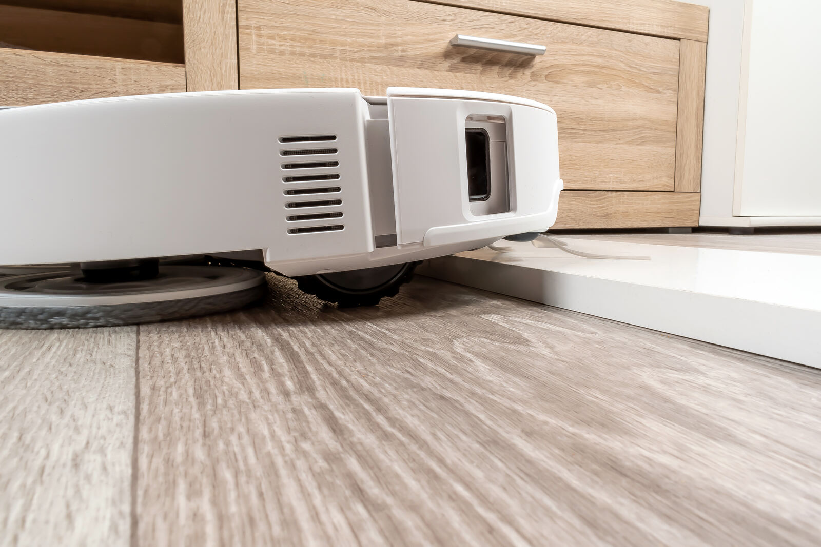 Während des Wischens arbeitet der Bot bei seinen Pads mit einem konstanten Anpressdruck von rund 12 Newton. Um das einzuordnen: Das entspricht ungefähr dem Gewicht eines etwa 1,2 Kilogramm schweren Gegenstands, der gezielt auf die drehende Wischfläche drückt. Dieser zusätzliche Druck hilft dabei, auch festere Rückstände besser vom Boden zu lösen, anstatt sie nur oberflächlich zu befeuchten.