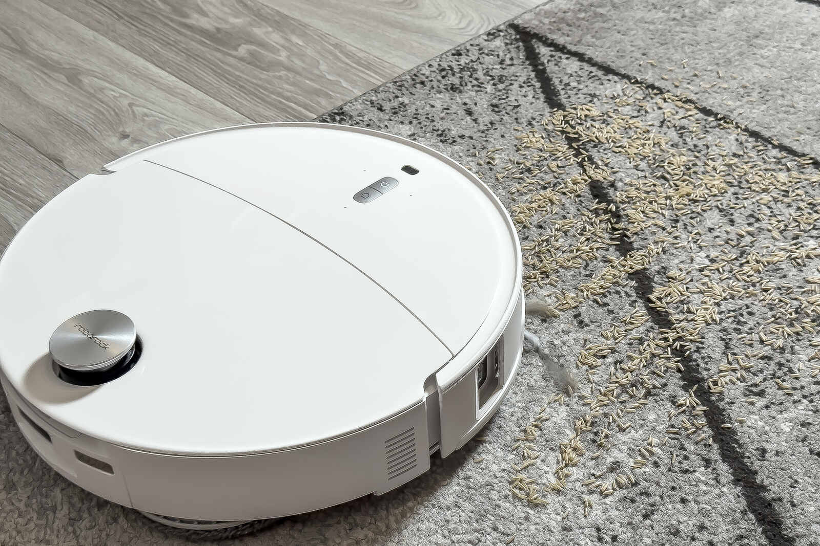 Gestalterisch setzt Roborock auf eine eher weiche, zurückhaltende Formensprache. Die Rundungen und das insgesamt schlichte Design sorgen dafür, dass der Sauger optisch nicht im Mittelpunkt steht, sondern sich problemlos in den Wohnraum einfügt. Der Deckel ist in Hochglanz gehalten - sieht fresh aus, zieht aber erfahrungsgemäß schnell Staub und Fingerabdrücke an. Die seitlichen Bereiche sind dagegen matt ausgeführt, was nicht nur unempfindlicher gegenüber Kratzern ist, sondern auch weniger Reinigungsaufwand bedeutet.