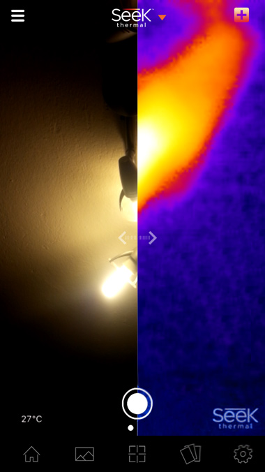 Bei der Compact XR kritisierten wir damals unter anderem, dass die Auflösung mit 206 x 156 Pixel einfach zu gering ist, um auf den Bildern immer entsprechend klare Konturen erkennen zu können, damit aber leider ein unabdingbares Feature für den Gutachter oder allgemein einer beruflichen Nutzung. Was nutzt einem schließlich ein Bild von einer Ecke im Raum, wenn diese im späteren Bild nicht ausgemacht werden kann? Eben, niemanden! Zumal es die spätere Protokollierung und Zuordnung der Bilder sehr erschwerte. Die Compact Pro hingegen ist nun in der Lage Thermal-Bilder und -Videos samt Tonaufnahme mit einer deutlich gesteigerten Auflösung von 320 x 240 Pixel aufzuzeichnen. Damit ist die Bilddarstellung reinweg von den Pixeln her um rund 35% gesteigert worden. Hinzu kommt, dass Seek Thermal auch Hand an seiner dazugehörigen App angelegt hat und diese in vielen Punkten optimiert wurde.